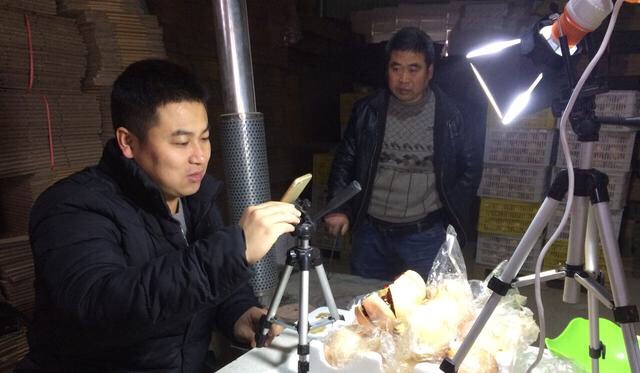 Every day, thousands of viewers log on to Handsome’s live-streaming channel to watch him selling the fruit of the day. On this occasion, he shows them a mess-free way to open a pomegranate and briefs them on the health benefits of the fruit. He chats to them, too, encouraging them to buy. Many of his viewers take him up on the offer, and place orders with Handsome’s companion, Xu Pengfei, the owner of the online store whose produce Handsome is promoting.