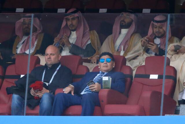 Diego Maradona looks on