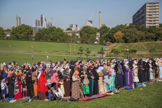 Muslims gather in Burgess Park, London, to celebrate the first day of Eid al-Adha (Getty Images)
