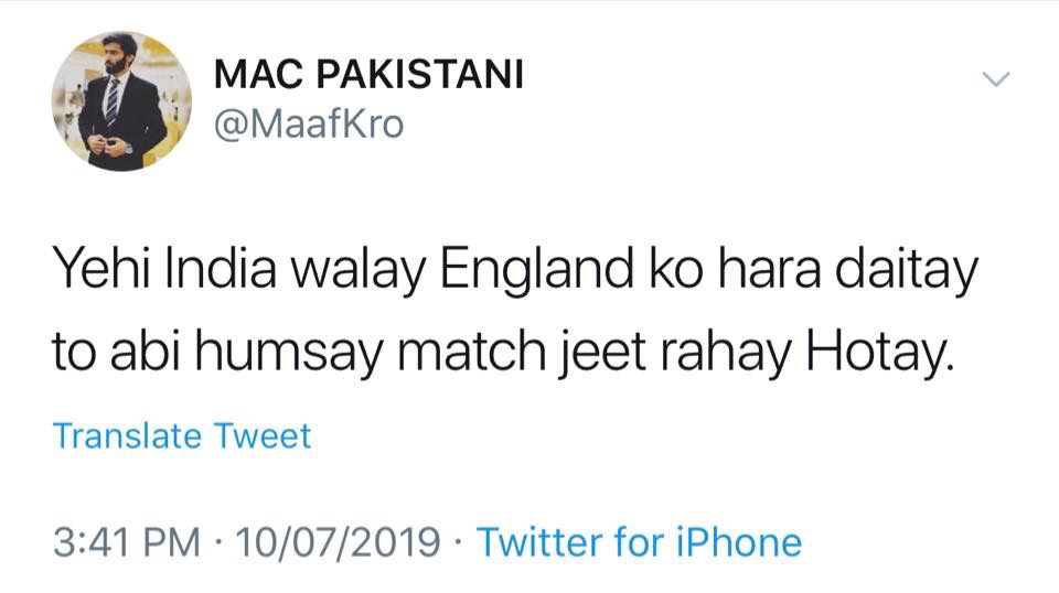 The first semi-final has just been played between India and New Zealand where you know who were the favorites. In Old Trafford fans ration was 85:15 % India: New Zealand. What a match it turned to put in the end was unexpected and exciting. It was a kind of roller coaster for fans in the Old Trafford. Fans around the world are saying its all about “Karma”, which means tit for tat. In the match, India played with England if they would have taken it serious than India had to face Pakistan in semi-final and that’s where the past record states Pakistan never won in such scenarios but India cautiously lost to England fetch New Zealand in semi-final and here is the result of the first semi you have seen. Pakistan, people are enjoying the moments at there best as its all over for India in the World Cup # CWC19.