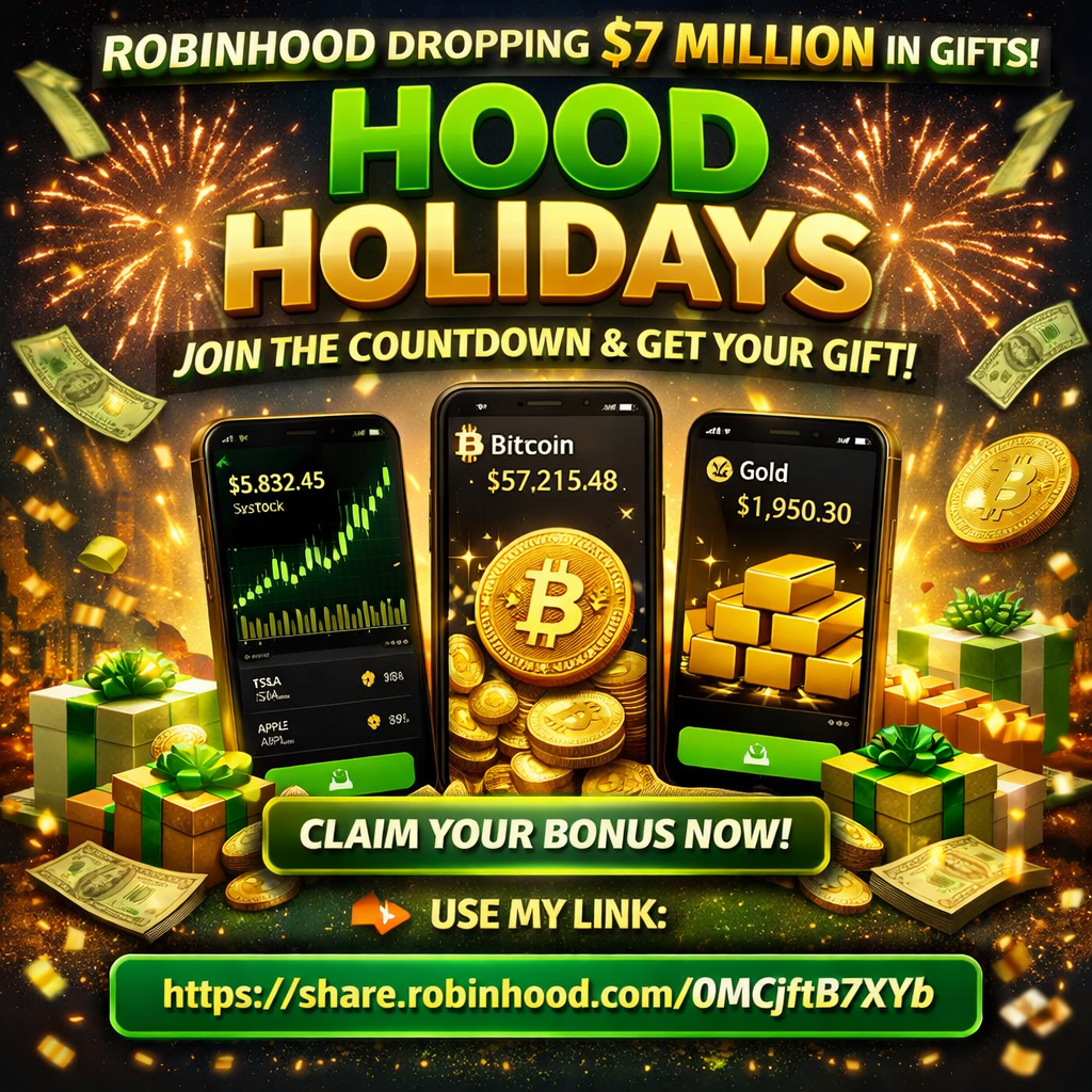 #Robinhood #HOODHolidays #TradingBonus #Investing #Stocks #Crypto #Gold #PassiveIncome #WealthBuilding