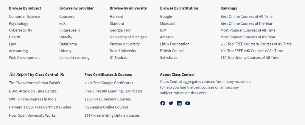 - Wide Range of Courses: Class Central offers an extensive selection of courses covering various disciplines and subjects. Whether you want to delve into computer science, business management, language learning, or even arts and humanities, Class Central has something for everyone. The platform partners with renowned universities and institutions from around the world, ensuring that the courses are of high quality and relevant to current industry trends.